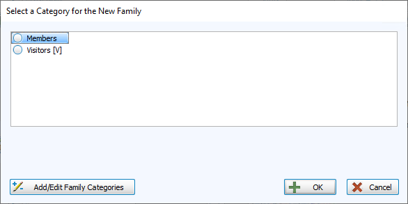 - First, a window will pop up where you must choose one of the Family Categories from the pop-up window (e.g. Members or Visitors or a custom category) and click the OK: