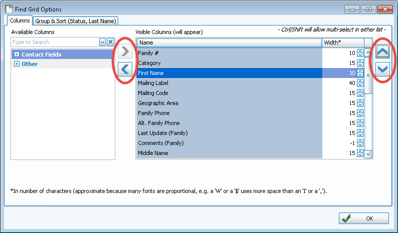 - Each column is set to print at a certain column width automatically. You can also change the width of the columns that show on the Grid. Raise or lower the number in the Width* column according to your preference.