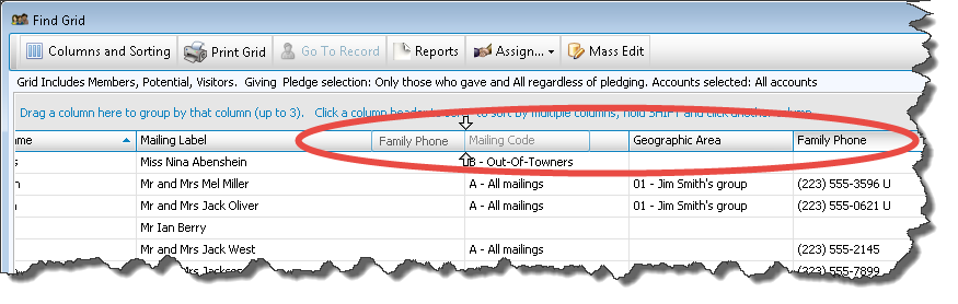 If you wish to alter the order of the list of family or individual records that you're seeing, you can also Group & Sort the Find Grid Records according to your needs.