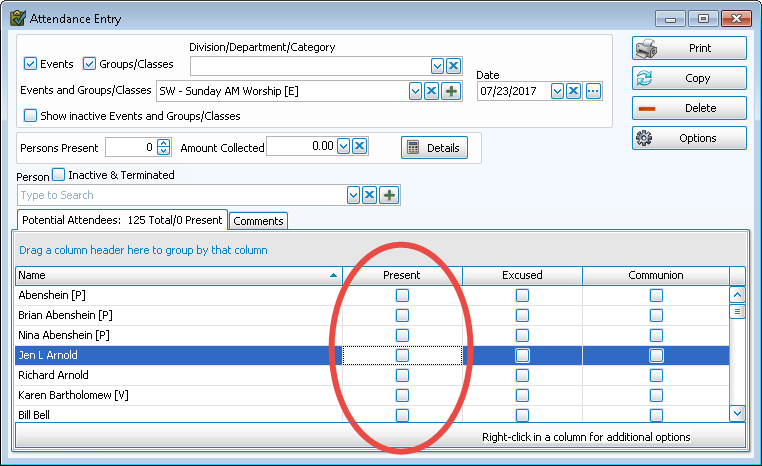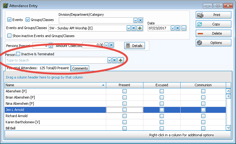 Once you have finished, if desired, you can click Print to run an Attendance Report.