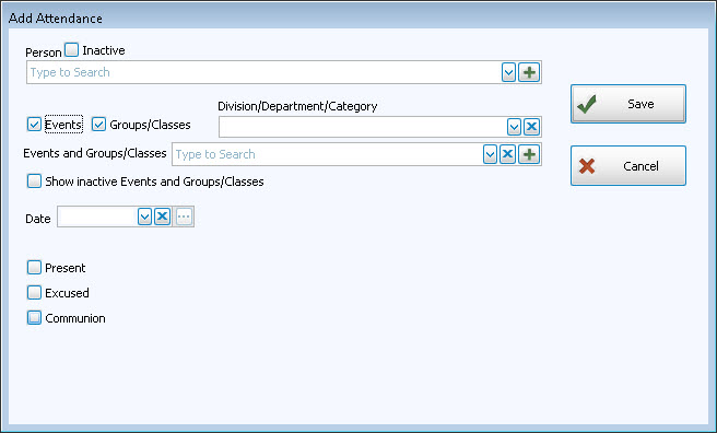 - Select the desired person in the person field, then click the Add Attendance