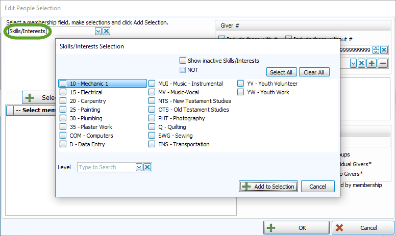 - If needed, add any additional People Selection Criteria and/or Giving / Pledging Selection Criteria.