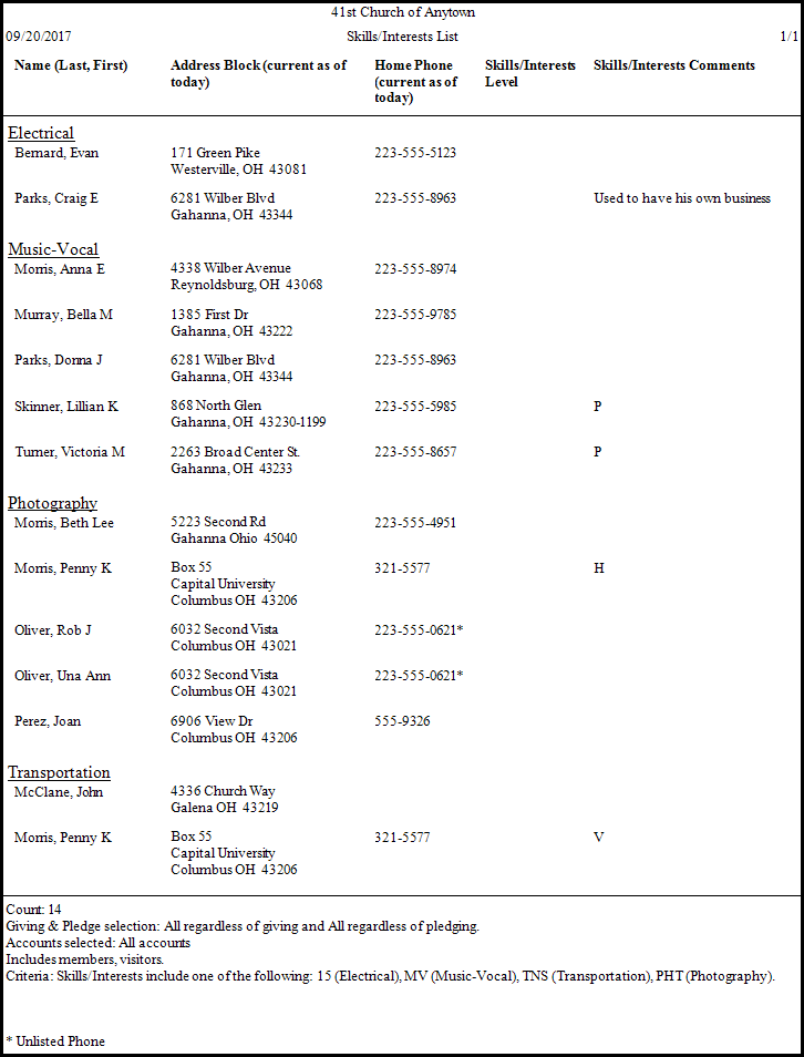 - Once you have made all of your selections, click Print to view a Print Preview and then proceed in sending the file to your printer. You can also Export most reports and/or Send via Email as a file to be used outside of Church Windows.