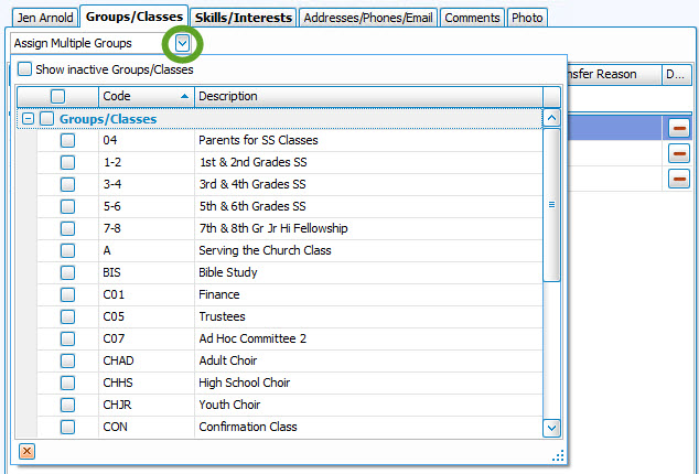 Clicking this dropdown will allow you to select and assign multiple groups to one person quickly and easily, simply click the down arrow and checkmark the desired groups: