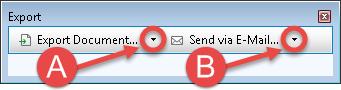 Clicking the Export button brings you to a screen where you can choose to save the report contents to a file (A), or send the report contents in an attached file by email (B). Both options involve transferring the report contents to a file. To send a report via email, your computer must have a properly configured email client that successfully sends and receives email independently of Church Windows (such as Microsoft Outlook).
