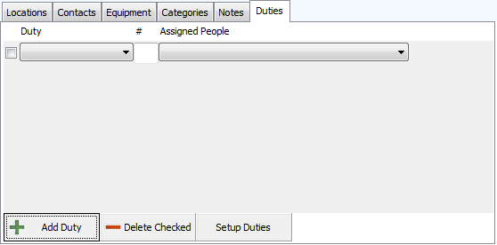 - When you return to the Duties tab of the Event screen, click Add Duty.