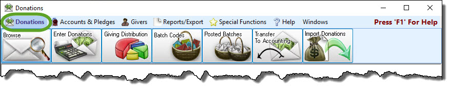 • Click Donations  in the Button Bar at the top of the screen: