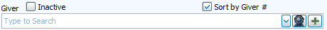 If you do not find the name of the Giver in the box, it is possible that the Giver is inactive or was never added as a Giver. Be sure to verify that the Giver is not listed as Inactive first, so that you do not add a duplicate entry for a Giver that might already exist. First, place a checkmark