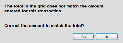 If you press Yes to the message, the Amount will be changed to the Total (in the grid). Otherwise, press No to manually correct any portion before adding it to the Unposted Donations Batch. - Unposted Donations Batch