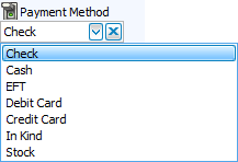 This field allows you to enter a number, if needed for the donation. This is one of the Locking Fields, meaning that you can turn it off if you do not want to fill it out.For example, cash donations would not need these numbers, so the field could be turned off while entering cash donations and turned on for checks.