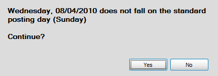 A message might appear on the screen to warn you if the day on which you are posting the batch does not fall on the standard posting day: