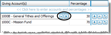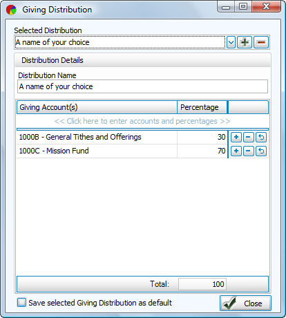 Delete button at the end of the line you wish to remove. When finished, click Close to exit the Giving Distribution screen.