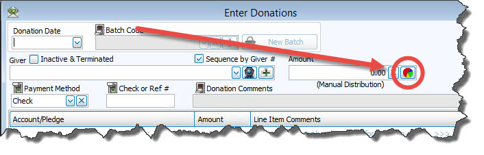 As you Enter Donations, the software gives you the option to have donations automatically distributed among accounts by pledge or by other means that you are in control to set in the software. You also have the option of distributing the amount of money given manually across the accounts to which the donations are being given.