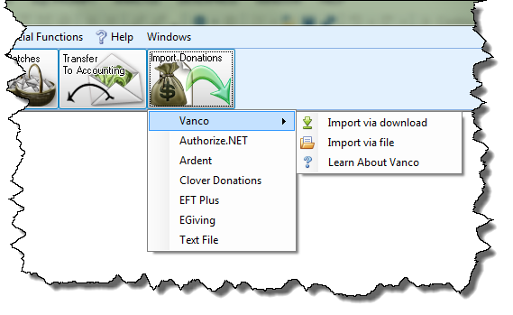 Any Church who uses Vanco and would like to use the Download option to import the giving directly into Church Windows needs to have a new Web Services Login created for them by Vanco first.Click here to initiate this process with Vanco.