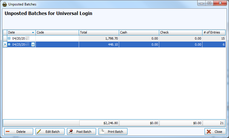 • If you decide that the batch information is correct and would like to post it, click to select the desired batch and click the Post Batch button.