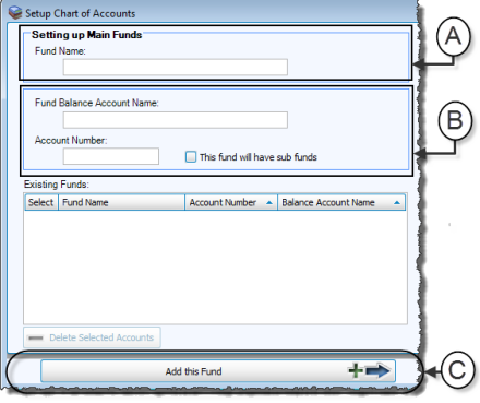 Expense account. If you choose to set up a Sub Fund for any Main Fund in the list, the Wizard will then allow you to add at least one Income account and/or at least one Expense account to each Sub Fund.