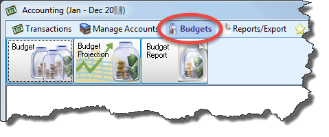 - Access the Budgets screen by clicking the option for it under the Budgets menu in the Button Bar at the top of the screen: