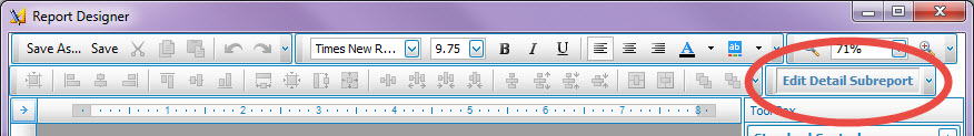 A/R Invoice and Statements Designer called Edit Detail Subreport: