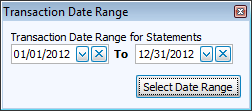 - When opening the screen you must first enter the Transaction Date Range and click the Select Date Range button: