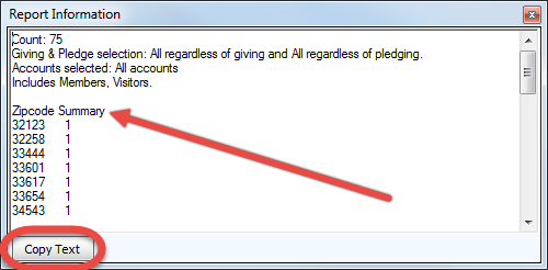 When printing Labels, this will also contain a Zipcode Summary which can be copied and then pasted into another program, if needed: