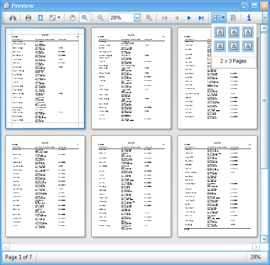 on the preview screen. The default is one page by one page. Hover your mouse over the number of pages you'd like to view, such as 3 pages side to side and 2 pages top to bottom: